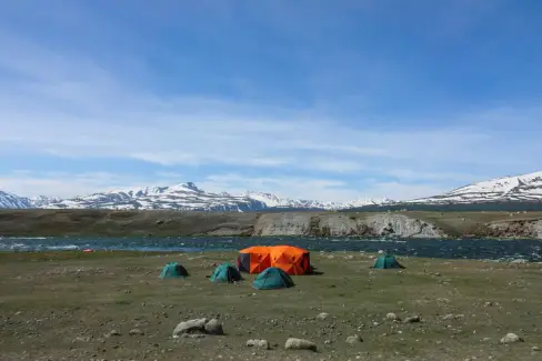 Immerse yourself in nature and enjoy the stunning backdrop of distant mountains. Camping here lets you experience the beauty of Kashmir up close, making it a perfect getaway.