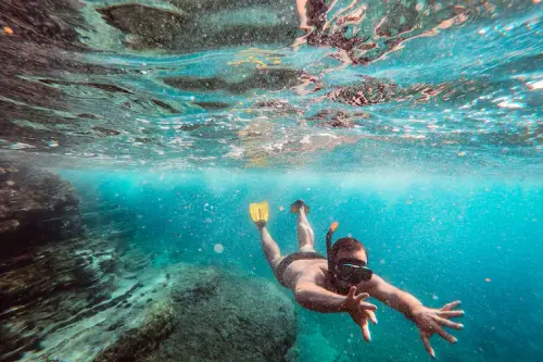 Dive into the crystal-clear waters of Elephant Beach and explore a mesmerizing underwater world. Swim alongside colorful fish, vibrant coral reefs, and fascinating marine creatures for an unforgettable experience.